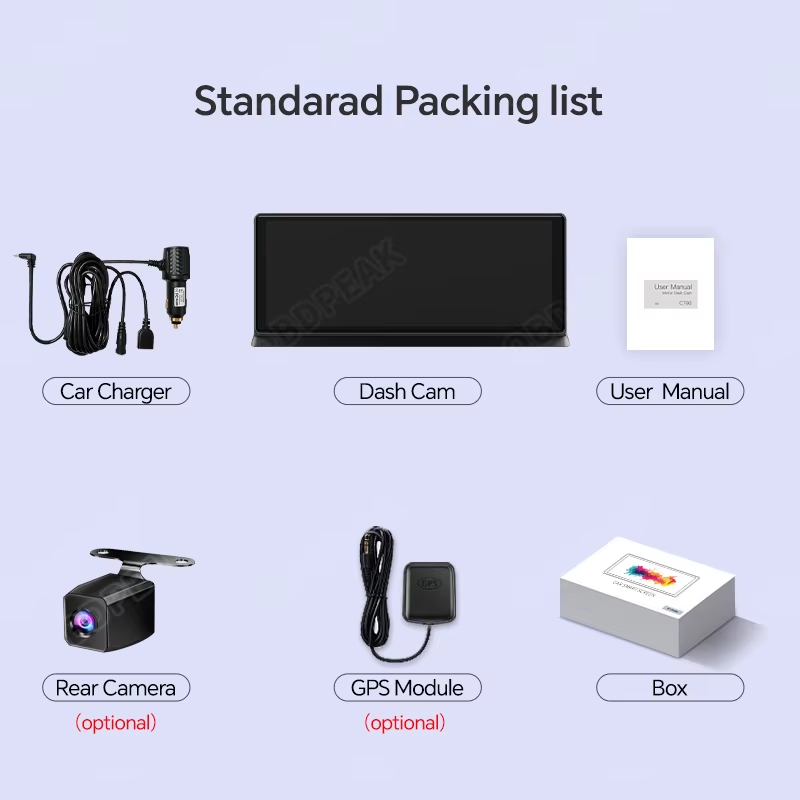 10.26 Inch ultra wide-angle full view touch screen, capturing license plates, road signs, and other critical details on the road. Very clear and smooth images display as like a stream flowing on the excellent WDR and auto adjusting brightness streaming mirror. Supports simultaneous 1:1 display of front and rear cameras. (The rear camera and cable require purchasing the dual lens option.)